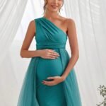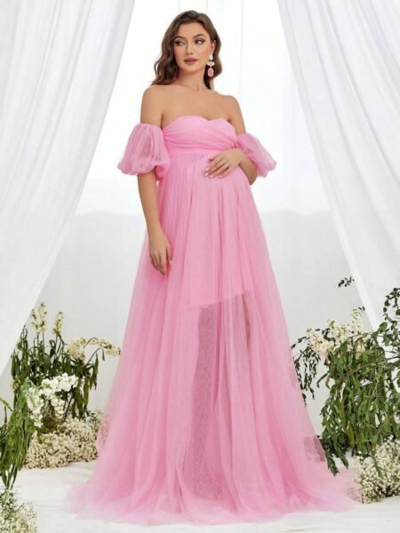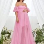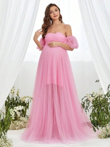 Renta de Vestido Maternidad Clásico Elegante Rosa Tul Modelo 4