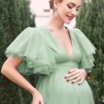 Renta Vestido Maternidad Elegante Baby Shower Verde Olivo Modelo 43
