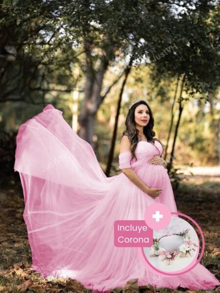 Luce espectacular en tu sesión de fotos o baby shower con este conjunto de maternidad de dos piezas. El top tubo de gasa con mangas de volantes añade un toque de elegancia, mientras que la falda con abertura garantiza comodidad y estilo.