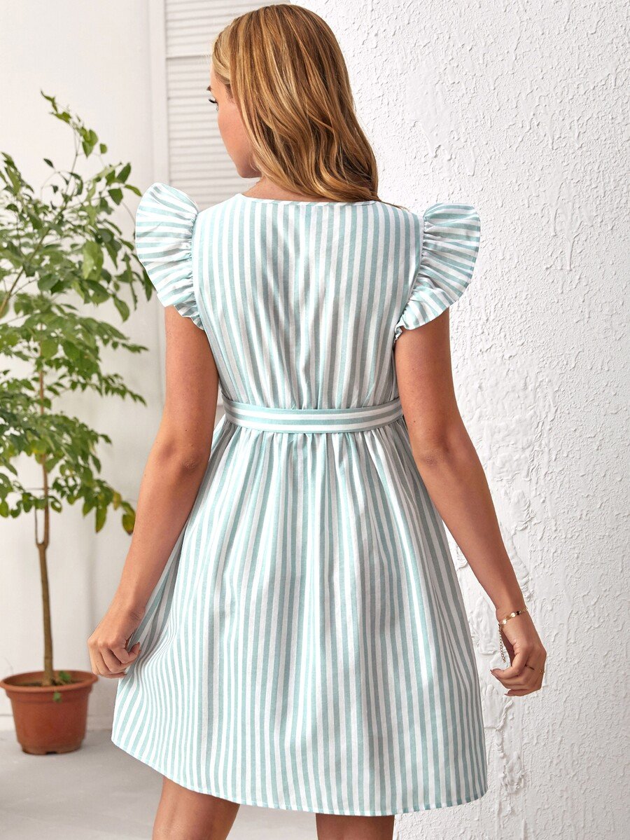 Fabricado con materiales suaves y respirables, este vestido garantiza que te mantendrás cómoda incluso durante los días más cálidos. Su diseño ligero y moderno es perfecto para llevar en distintos entornos, ya sea en el trabajo, en un paseo con amigos, o simplemente durante una tarde de descanso en casa. El estampado de rayas verticales ayuda a estilizar visualmente la silueta, creando una apariencia favorecedora mientras abrazas tu estilo personal.