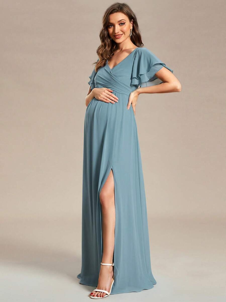 El vestido de maternidad elegante verde agua combina estilo y funcionalidad para acompañarte durante uno de los momentos más importantes de tu vida. Elaborado para resaltar tu belleza natural, este vestido se presenta como una opción ideal para ocasiones especiales o para esos días en los que simplemente deseas sentirte sofisticada y cómoda. Su color verde agua fresco y su confección con atención a los detalles garantizan que te sientas segura y chic.